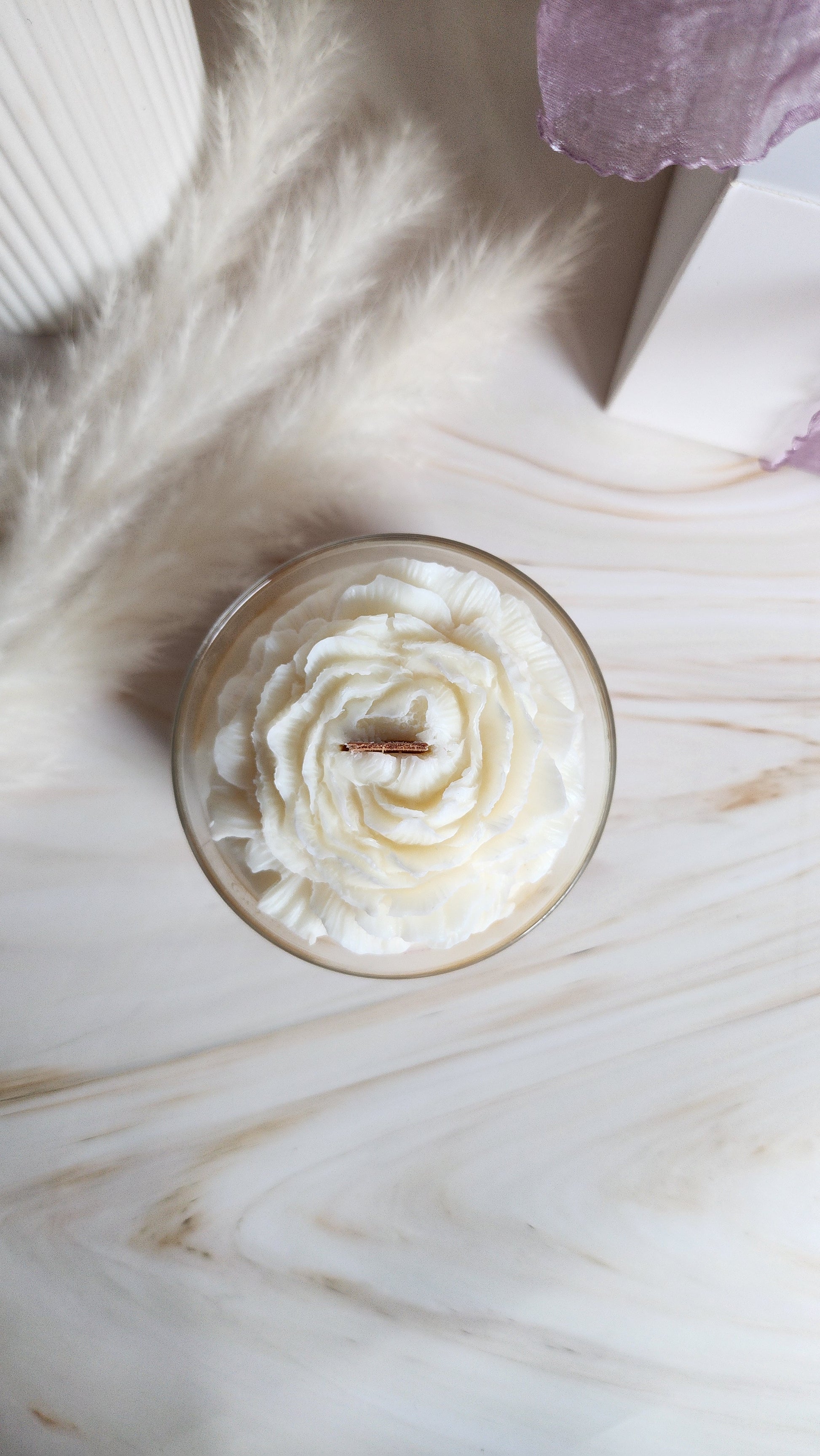Cette bougie en forme de fleur apporte une touche esthétique et s'intègre à toute décoration intérieure.